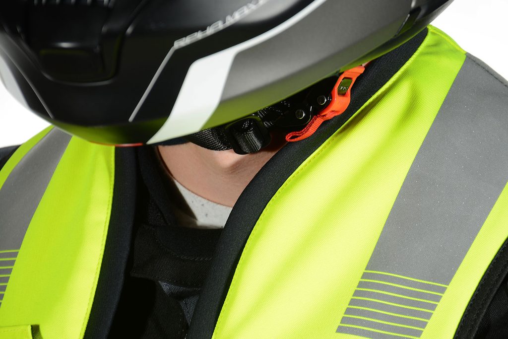 Tři nastavovací popruhy, díky nimž vesta velmi pěkně sedí přes jakékoliv motocyklové oblečení. Odolné přezky jsou schopny odolat velkému počtu nafouknutí. Snadno se otevírají a zavírájí, dokonce i s rukavicemi.