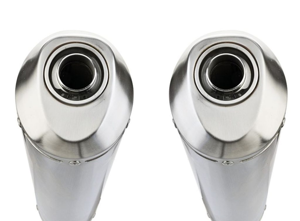 Dvojitá koncovka výfuku Slip-on GPR SATINOX H.47.SAT Broušená nerezová ocel zahrnuje odnímatelné dB killery a spojovací svody
