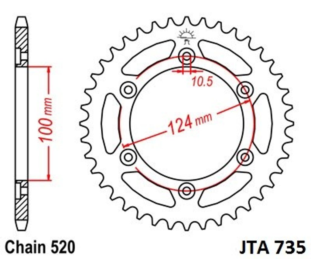 Hliníková řetězová rozeta JT JTA 735-37 37 zubů, 520