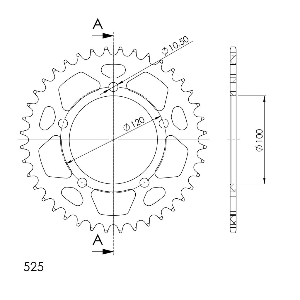 Hliníková řetězová rozeta SUPERSPROX RAL-702:40-BLK černý 40 zubů, 525