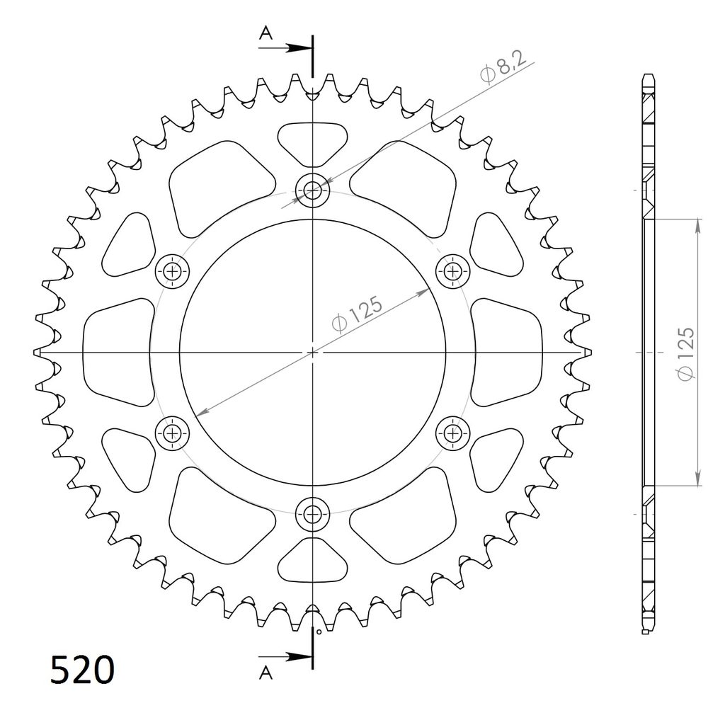 Hliníková řetězová rozeta SUPERSPROX RAL-8000:50-SLV stříbrná 50 zubů, 520