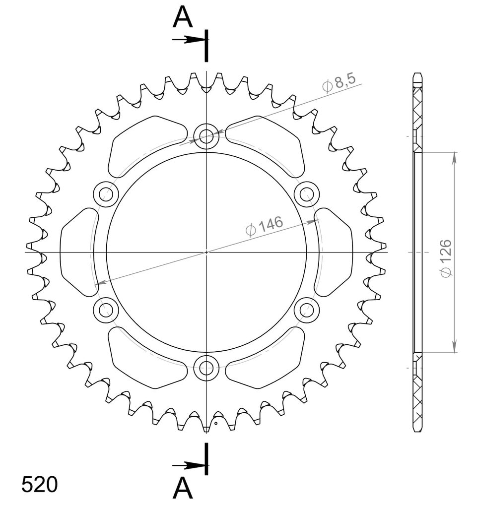 Hliníková řetězová rozeta SUPERSPROX RAL-808:43-BLK černý 43 zubů, 520