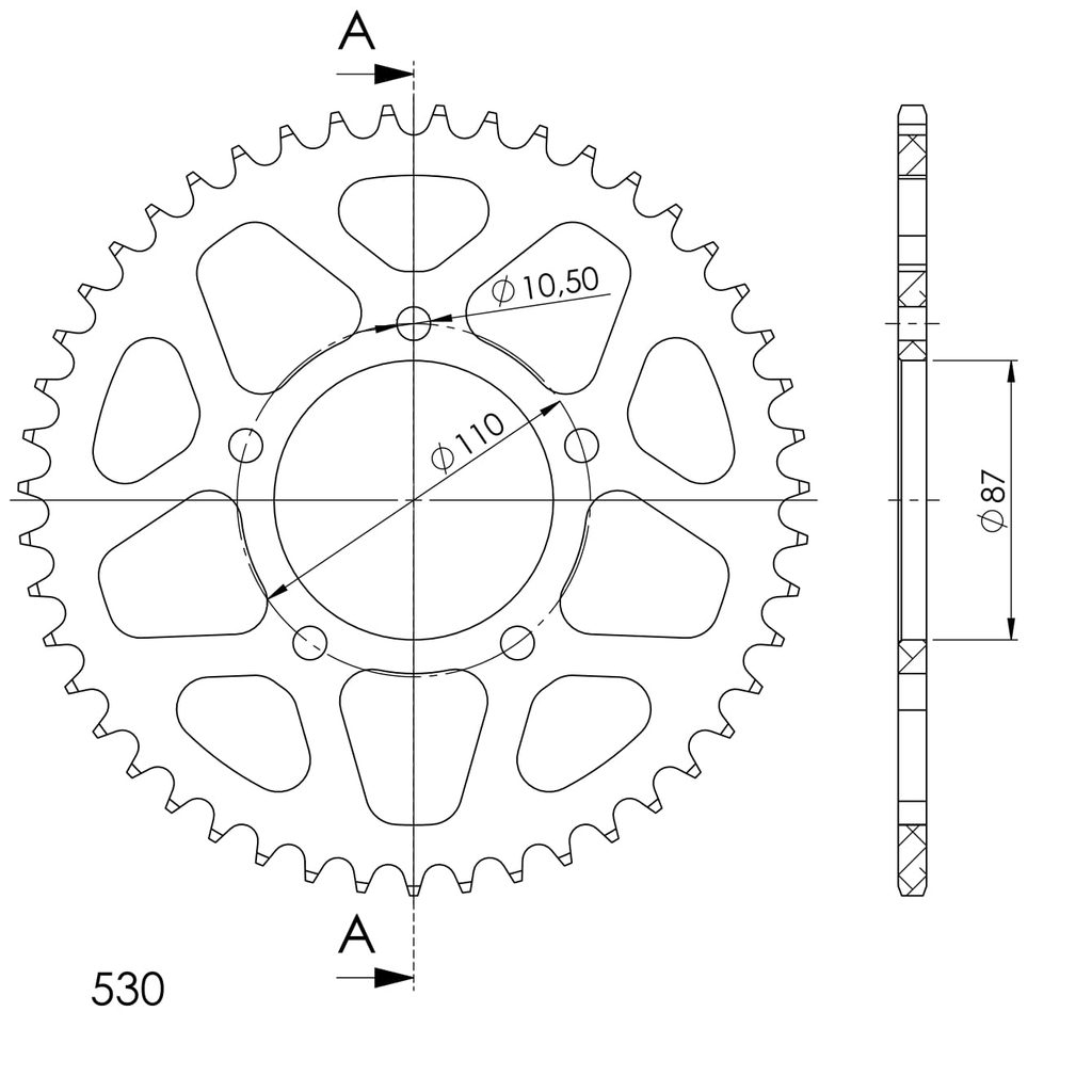 Hliníková řetězová rozeta SUPERSPROX RAL-829:47-BLK černý 47 zubů, 530
