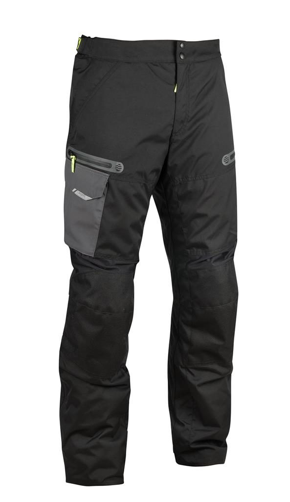 Pevný a přesto pohodlný hlavní materiál Hydronyl 600 zajišťuje pohodlí a ochranu, zatímco strategicky umístěné strečové panely vzadu v pase a nad koleny umožňují dokonalou pohyblivost na motocyklu.