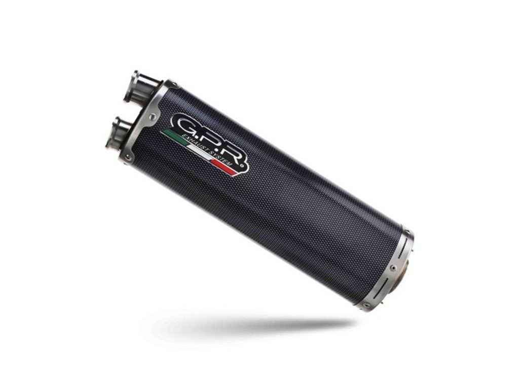 Koncovka výfuku Slip-on GPR DUAL POPPY E4.H.226.1.DUAL.PO Karbonový vzhled zahrnuje spojovací svod a odnímatelný dB killer