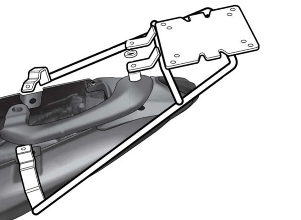 K upevnění vrchního kufru SHAD na motorku stačí namontovat tuto montážní sadu, plotna je vždy součástí kufru (kromě kufrů TR48/TR37).