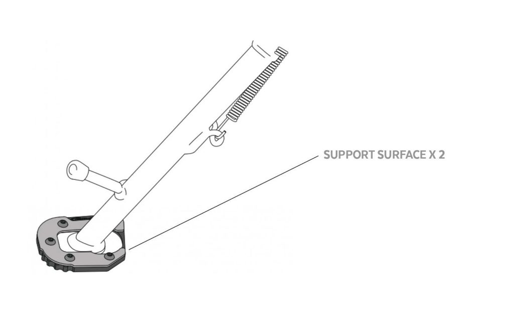Navržena tak, aby zabránila možnému pádu motocyklu během stání. Tento díl, s 100 % širší základnou než originál, umožňuje bezpečně parkovat na měkkém nebo nerovném povrchu. Jedná se o kombinovaný díl, kde jedna část je z nerezové oceli a druhá je soustružená z hliníkového bloku s anodizovanou úpravou. Tyto materiály poskytují vysokou odolnost při zachování nízké hmotnosti (110–160 g v závislosti na modelu).