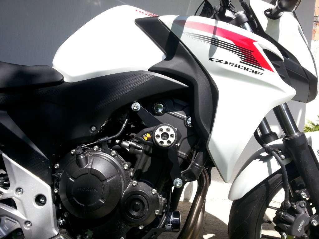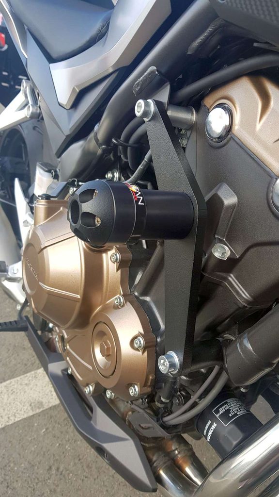 Hlavice protektoru je upevněná na desce kotvené dvěma šrouby k rámu. Zajišťuje tak ochranu spodního úchytu motoru, který je velice křehký a při použití jednobodové sady u tohoto modelu je velké riziko jeho ulomení.