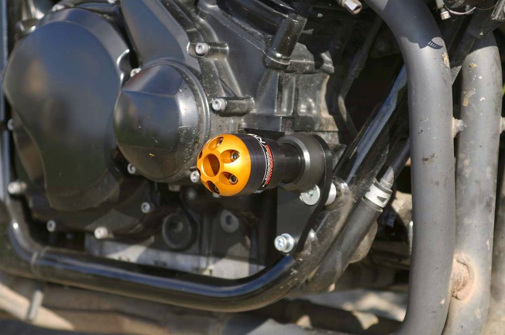 Hlavice protektoru je upevněná na desce kotvené dvěma šrouby k rámu