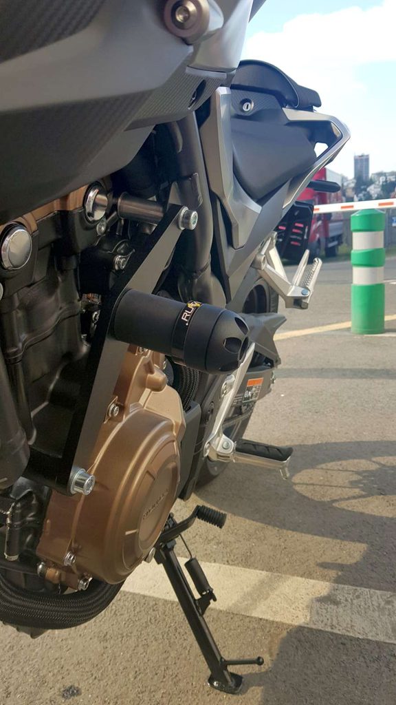 Hlavice protektoru je upevněná na desce kotvené dvěma šrouby k rámu. Zajišťuje tak ochranu spodního úchytu motoru, který je velice křehký a při použití jednobodové sady u tohoto modelu je velké riziko jeho ulomení.