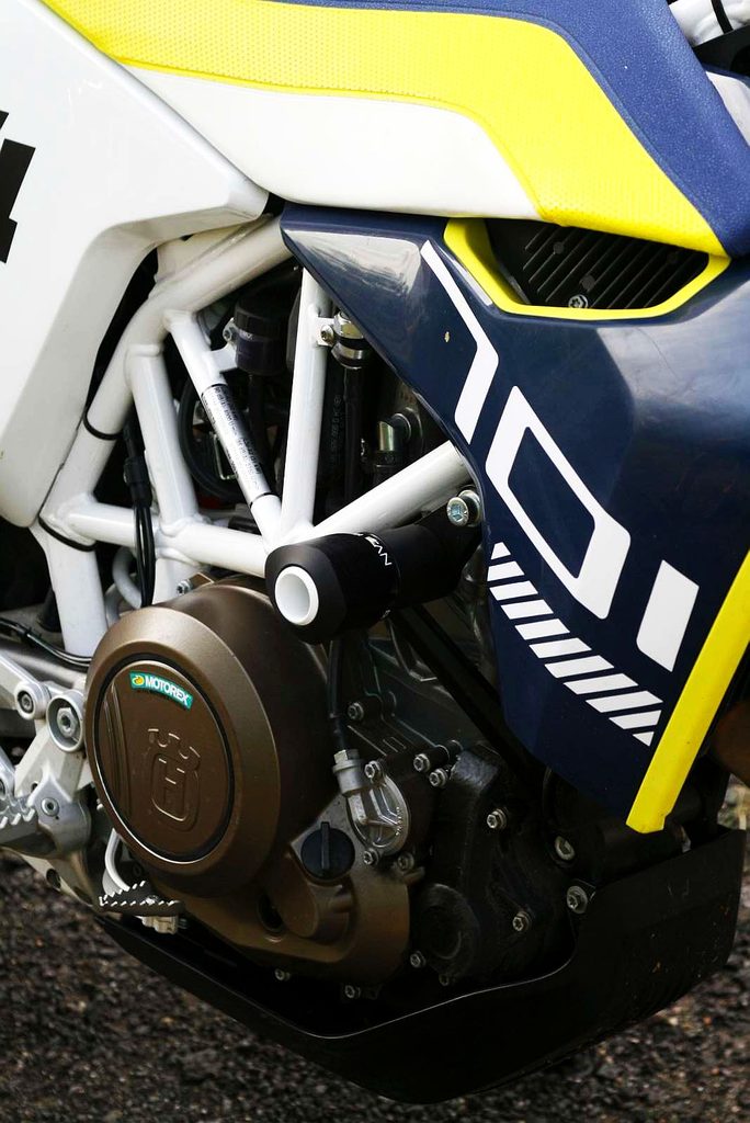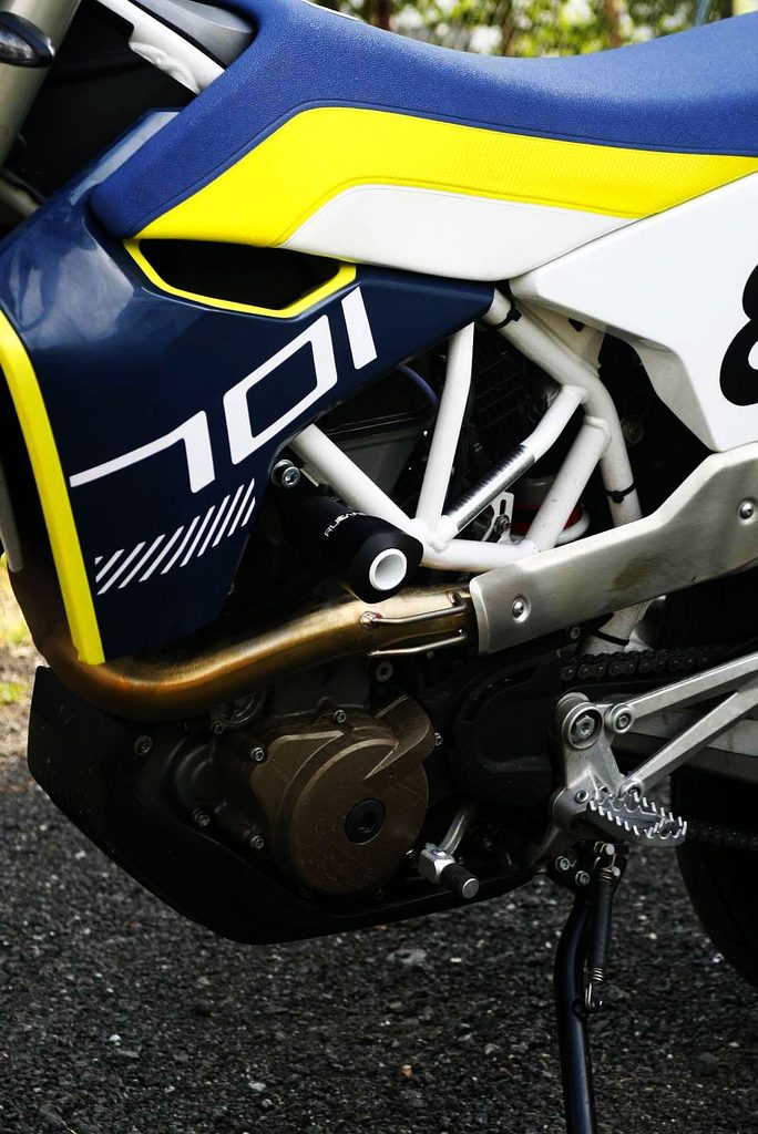 Hlavice protektoru je upevněná na desce kotvené dvěma šrouby k rámu.