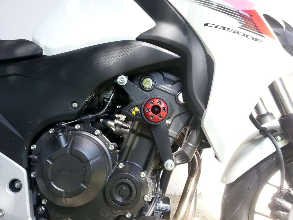 Hlavice protektoru je upevněná na desce kotvené dvěma šrouby k rámu. Zajišťuje tak ochranu spodního úchytu motoru, který je velice křehký a při použití jednobodové sady u tohoto modelu je velké riziko jeho ulomení.
