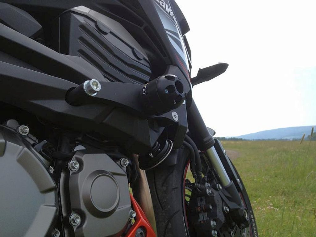Hlavice protektoru je upevněná na desce kotvené dvěma šrouby k rámu. Kosmetická úprava plastů na obou stranách nutná - viz montážní návod