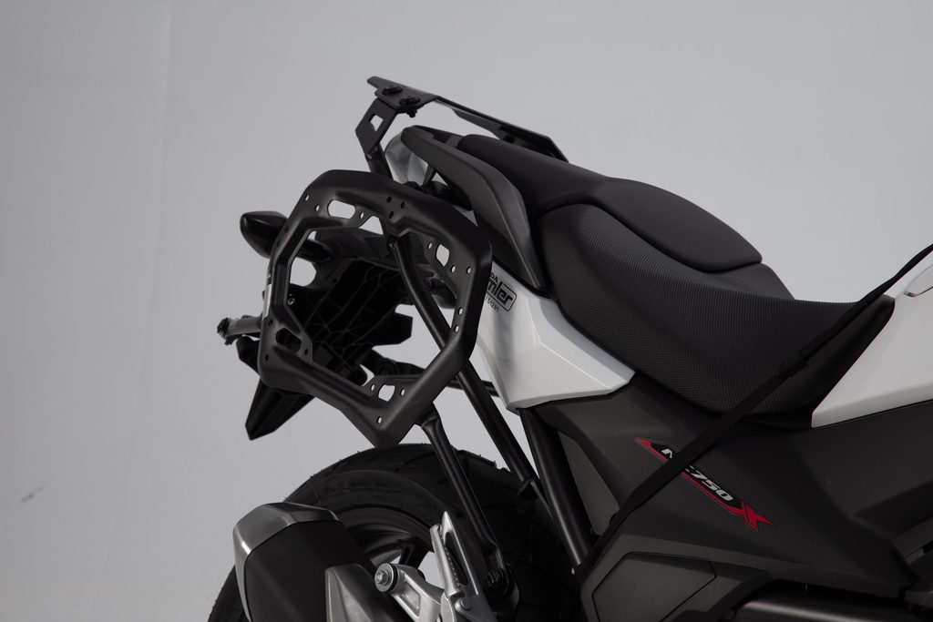 - Sady adaptérů jsou vyžadovány pro hliníková pouzdra od SW-MOTECH a dalších výrobců a také pro boční kufry AERO ABS a SysBags s adaptérovými deskami (SysBag 15, 30, WP L).