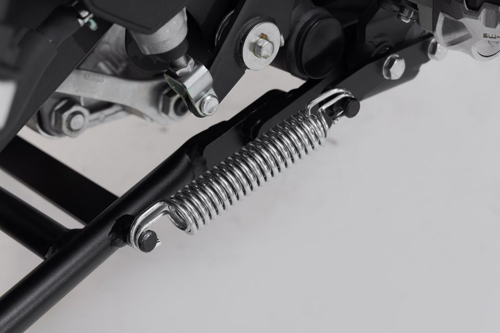 Díky nové technologii lze nyní středový stojan Kawasaki KLR 650 (21-) namontovat bez námahy: pružina je zaháknuta bez napětí a utažena šroubem.