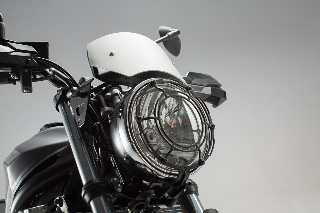 Tato ochranná ocelová mřížka, která doplňuje puristický design Suzuki SV650 ABS, chrání čočku světlometu před odletujícími kamínky a jinými létajícími předměty. Ochranu světlometů lze nainstalovat na původní držák světlometu motocyklu v několika jednoduchých krocích, černý práškový lak zabraňuje poškrábání a korozi.