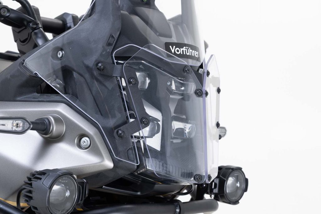 Kryt světlometu s průhlednou a extrémně silnou ochrannou clonou z Makrolonu chrání před odletujícími kamínky a jinými předměty. Nosný rám je vyroben z laserem řezané a vysokopevnostní oceli.