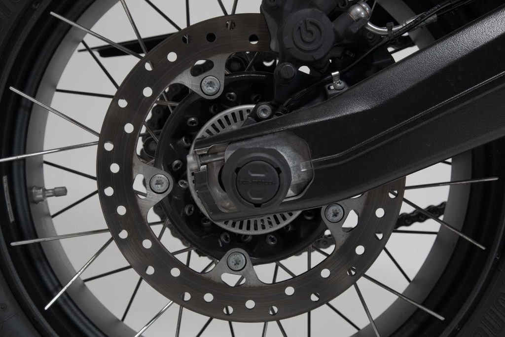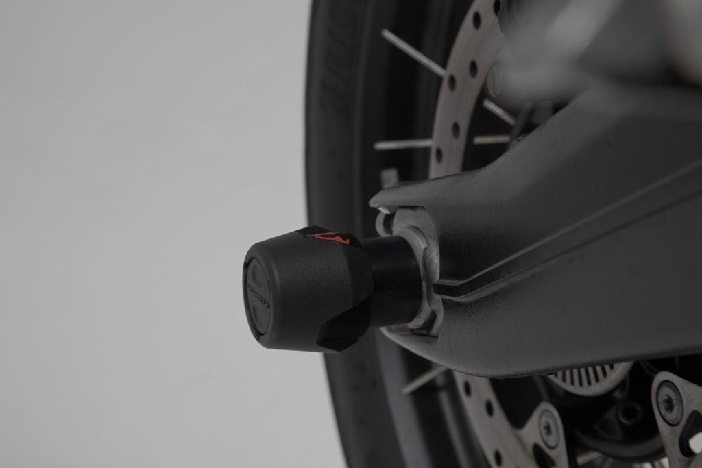 Nárazové podložky zadní nápravy vyrobené z otěruvzdorného plastu chrání kyvné rameno před poškozením v případě pádu. S obsahem skleněných vláken 30% je jádro padací podložky odolné proti nárazu. Hladký povrch také poskytuje vynikající kluzné vlastnosti. Leštěné logo býka v červené barvě dodá vašemu motocyklu vizuální zvýraznění.