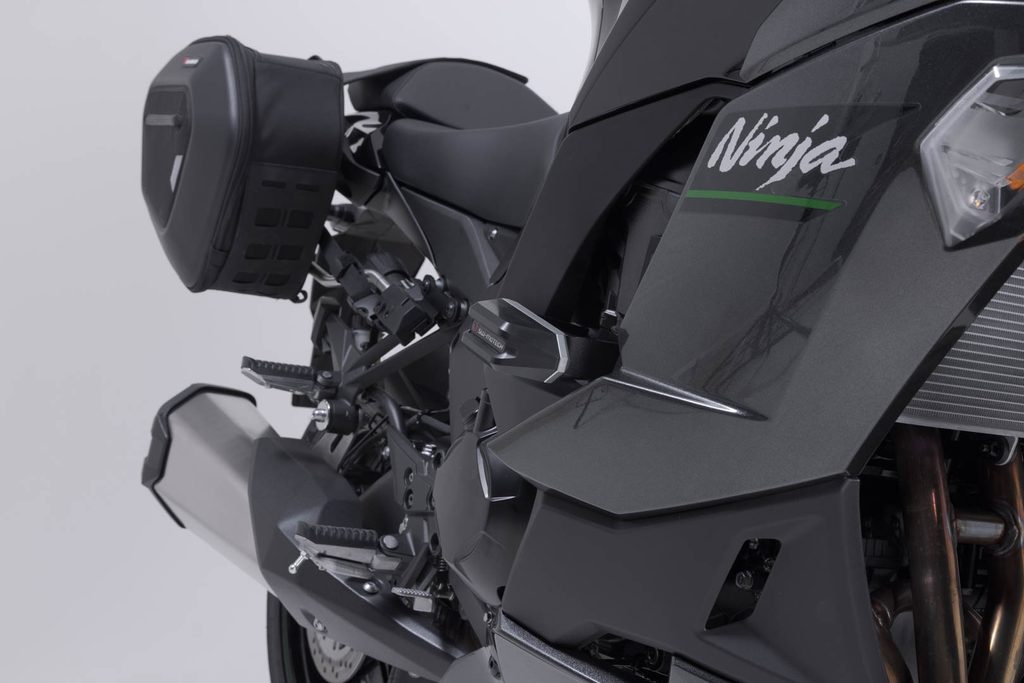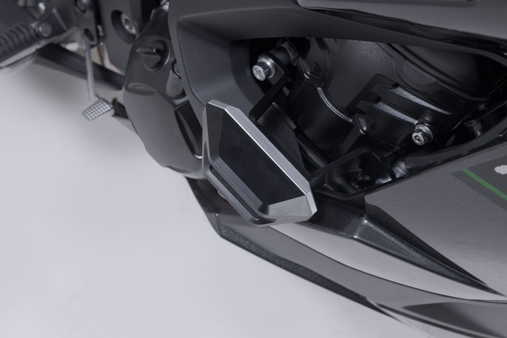 Nárazové podložky na rám poskytují dodatečnou ochranu v případě pádu. Tvar, povrch a materiál destiček poskytuje vynikající kluzné vlastnosti pro snížení poškození motocyklu. Robustní hliníkový montážní držák se snadno instaluje a otěruvzdorné, CNC frézované posuvné podložky jsou vyměnitelné.