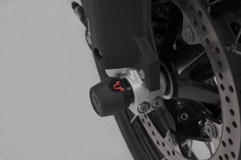 Nárazové podložky přední nápravy vyrobené z otěruvzdorného plastu chrání hnací hřídel před poškozením v případě pádu. Hladký povrch také poskytuje vynikající kluzné vlastnosti. Leštěné logo býka v červené barvě dodá vašemu motocyklu vizuální zvýraznění.