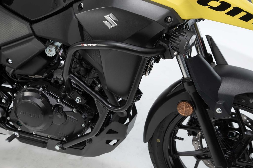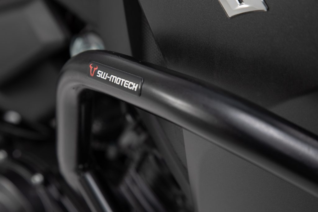 Nabízíme také padací rámy z ocelové trubky o průměru 27 mm s práškovým lakem odolným proti povětrnostním vlivům a korozi v černé barvě, aby odpovídaly modelu motocyklu. Povrchová úprava se provádí v nejmodernějším zařízení v továrně SW-MOTECH v brünnu.