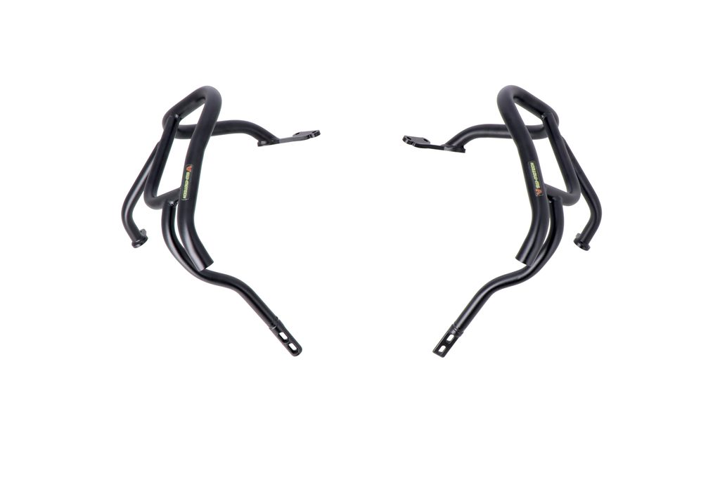 Větší bezpečnost v případě pádu nebo kolize: robustní boční nárazový rám s průměrem trubky 27 mm nabízí spolehlivou ochranu komponentů, nádrže a kapotáže. Padací protektor, který je speciálně vyvinut pro model motocyklu, je připevněn k upevňovacím bodům na původním rámu. Tím je dosaženo vysokého stupně stability. K montáži není nutné svařování ani vrtání. Černý práškový lak chrání trubkovou ocelovou konstrukci před korozí a poškrábáním.