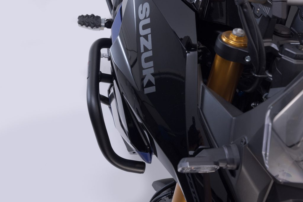 Padací rámy jsou vhodné pro Suzuki DL 800DE a jsou vyrobeny z robustní ocelové trubky s černým práškovým lakováním odolným proti povětrnostním vlivům a korozi. Povrchová úprava je prováděna v nejmodernějším zařízení v závodě SW-MOTECH v Brně v České republice.