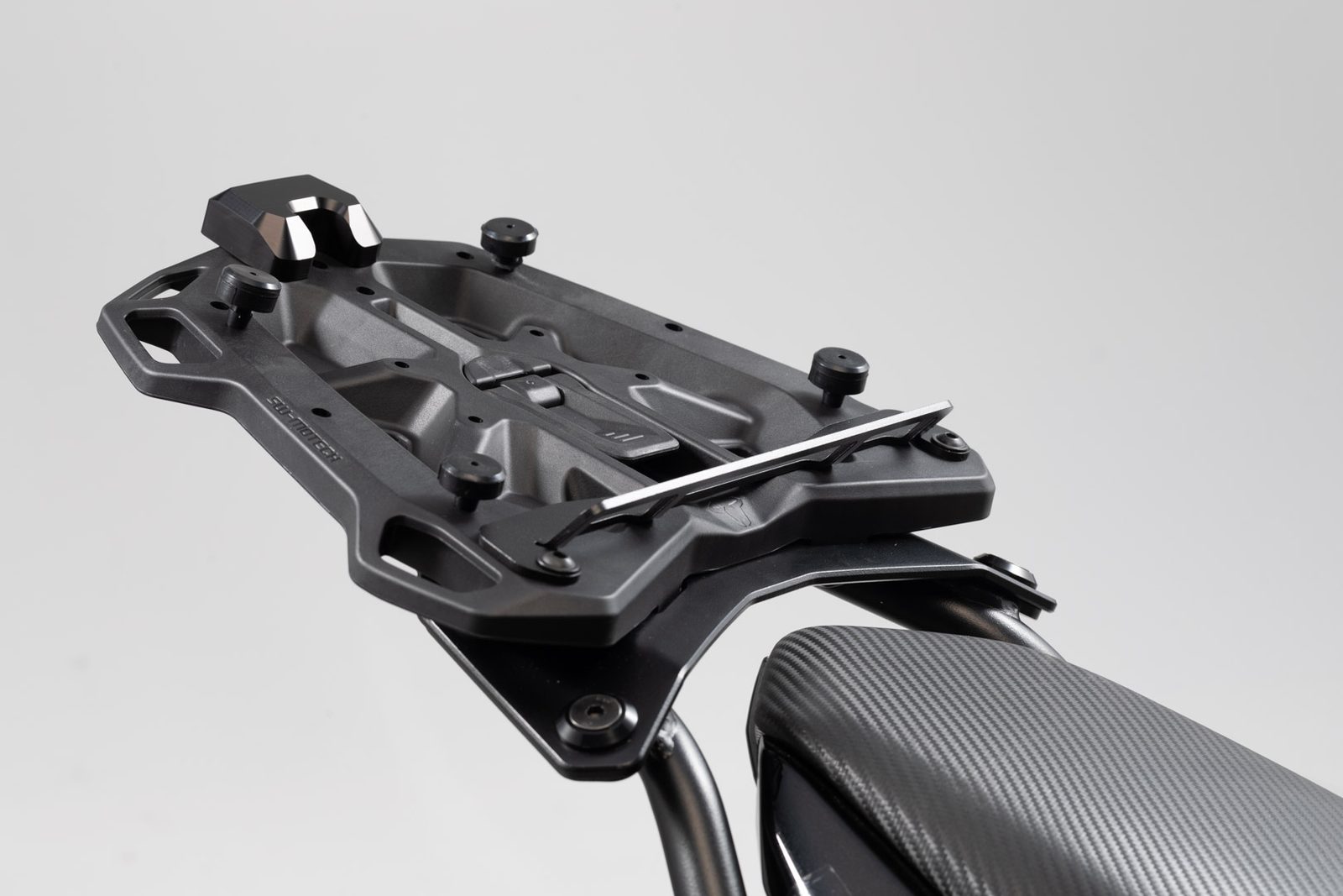 Jedním jednoduchým otočením a upnutím lze adaptérovou desku připojit k libovolnému STREET-RACKu. Nejsou potřeba žádné nástroje! Adaptérová deska se jednoduše nasune na stojan a bezpečně se uzamkne pomocí otočné vačkové západky. Po jízdě lze desku adaptéru během několika sekund vyjmout a na motocyklu zůstane pouze nosič. Adaptérová deska boduje také velkou a rovnou styčnou plochou a šesti velkými upevňovacími oky. Součástí dodávky je správná sada adaptérů pro připevnění topcase od společnosti Shad (SH48, SH49, SH50, SH58x, SH59x).