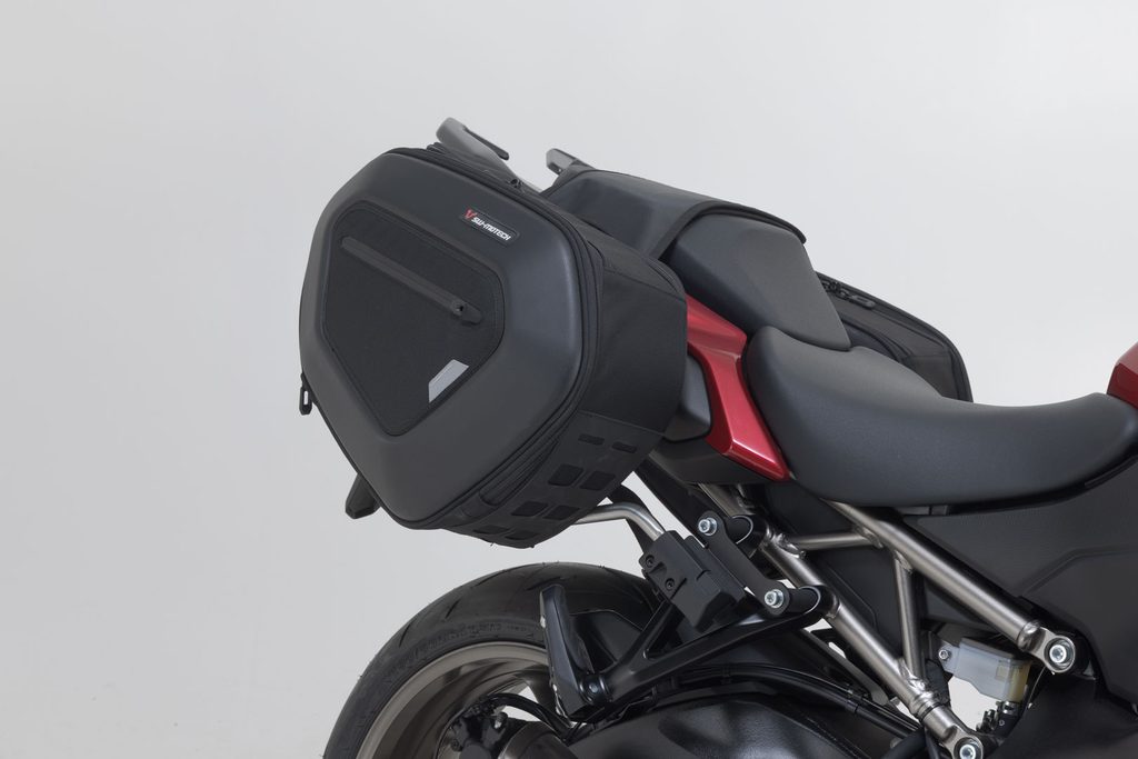 Sedlové brašny, vyvinuté speciálně pro sportovní motocykly, mají minimální vliv na jízdní vlastnosti. Při cestování bez zavazadel lze odnímatelná opěrná ramena jednoduchým krokem odpojit a na kole tak zůstanou jen nenápadné držáky.