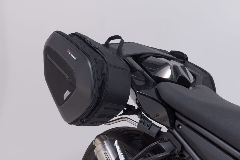 Sedlové brašny, vyvinuté speciálně pro sportovní motocykly, mají minimální vliv na jízdní vlastnosti. Při cestování bez zavazadel lze odnímatelná opěrná ramena jednoduchým krokem odpojit a na kole tak zůstanou jen nenápadné držáky.