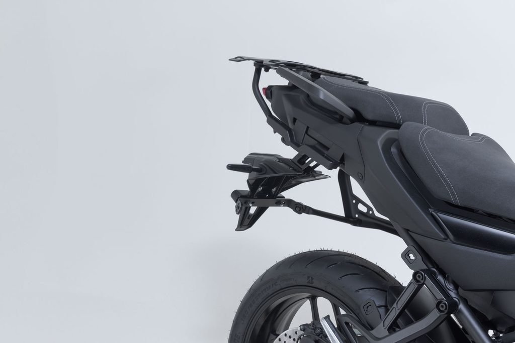 Boční nosič PRO nabízí bezpečné uchycení bočních kufrů a SysBag WP L – odpovídající sady adaptérů jsou k dispozici samostatně. Četné funkční vyvrtané otvory bočního nosiče PRO umožňují montáž dalšího příslušenství.