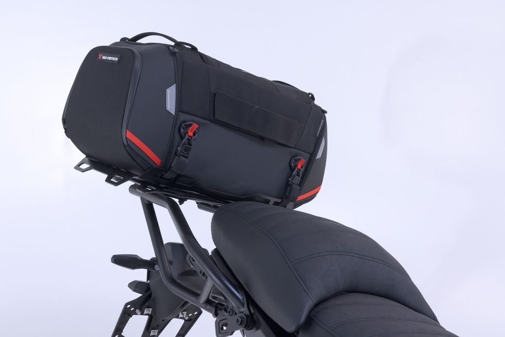 Tail bag ze série PRO je vyroben společností SW-MOTECH z nezničitelného 1680 D Ballistic Nylonu a nosič z robustní hliníkové slitiny. Nosič je připevněn k pružným montážním bodům na motocyklu specifickým pro jízdní kolo.