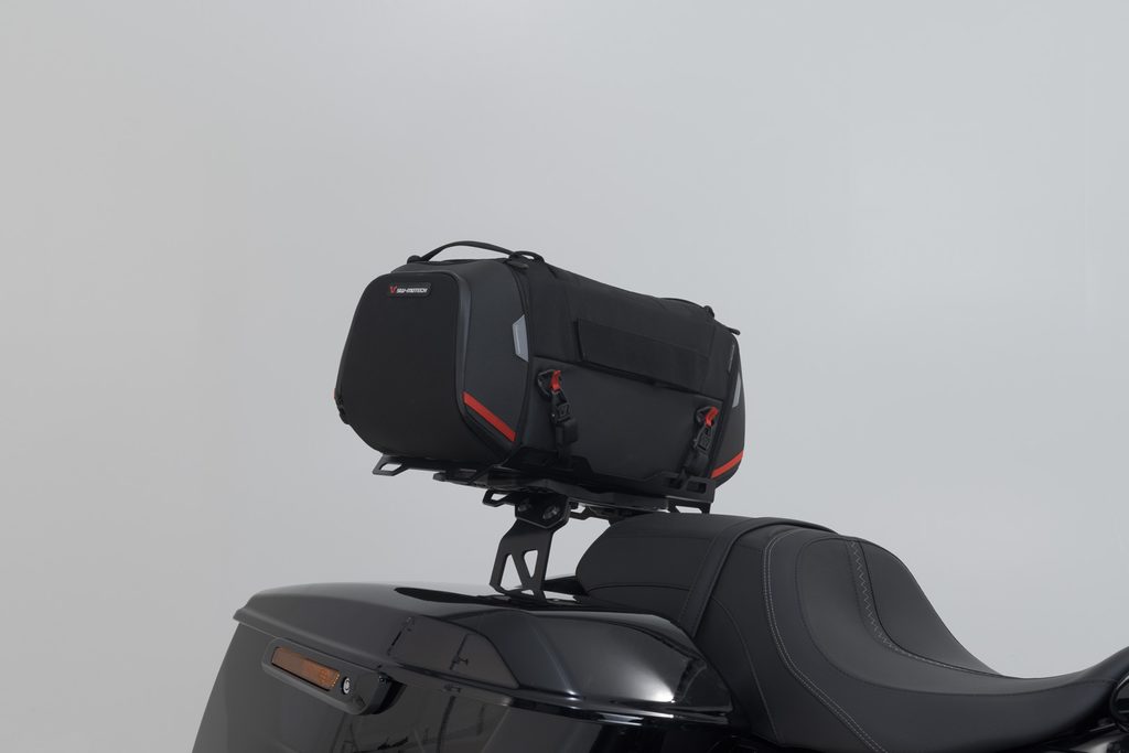 Tail bag ze série PRO je vyroben společností SW-MOTECH z nezničitelného 1680 D Ballistic Nylonu a nosič z robustní hliníkové slitiny. Nosič je připevněn k pružným montážním bodům na motocyklu specifickým pro jízdní kolo.