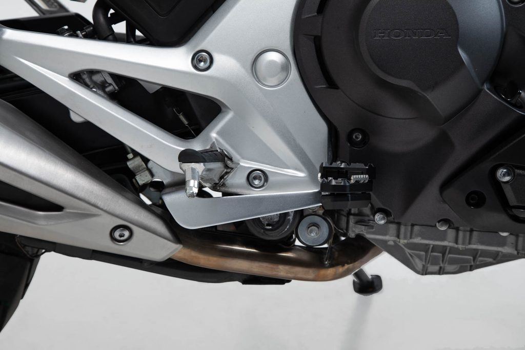 SW-MOTECH vyrábí toto rozšíření pro brzdový pedál vyrobený z frézovaného hliníku, aby se vešel do původního brzdového pedálu Hondy NC 750 X.