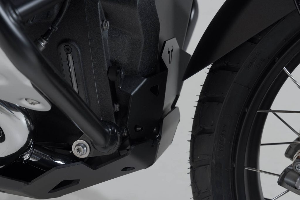 Prodloužení krytu motoru chrání přední část bloku motoru před odletujícími kamínky. Chránič je vyroben z broušeného a práškově lakovaného hliníku a musí být namontován společně s krytem motoru SW-MOTECH.