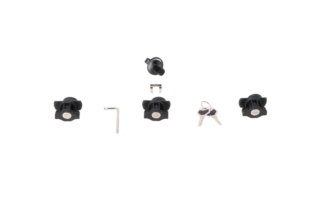 Zabezpečte své pevné pouzdro DUSC proti krádeži: S touto sadou současně uzamykaných zámků můžete současně zavřít otvor pouzdra a současně zabezpečit připojení nosiče.