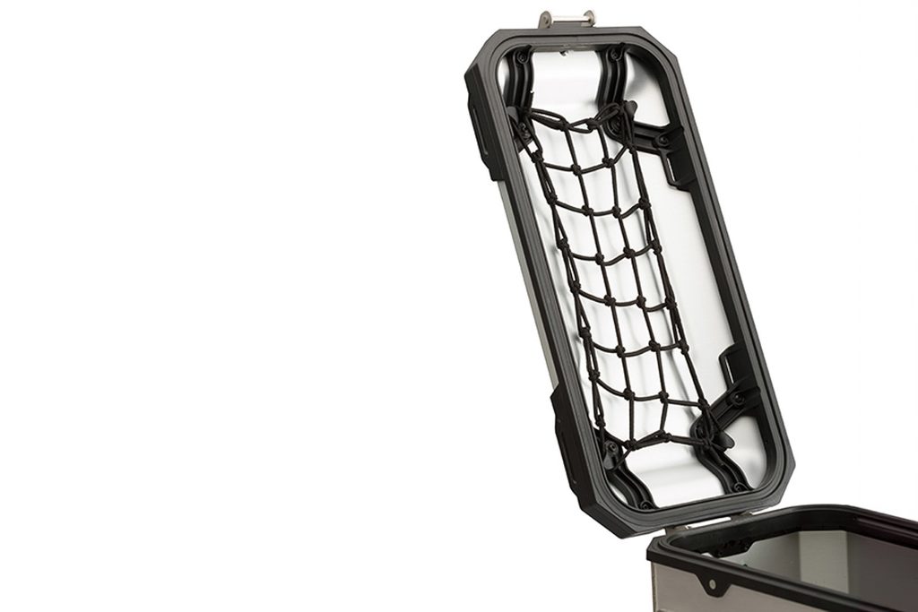 Vše blízko na dosah ruky: čistá pro náš systém kufrů TRAX ADV hliníkové víko vám pomůže získat vaše zavazadla organzied. V tep vysoce flexibilní síť lze montovat na fixační body uvnitř víka. Tímto způsobem při otevírání krytu dokumentů, navíc boty, pláštěnku nebo skládací batoh jsou vždy při ruce. Praktické víko síť je k dispozici ve třech velikostech, montáž různých modelů motocyklů případů.