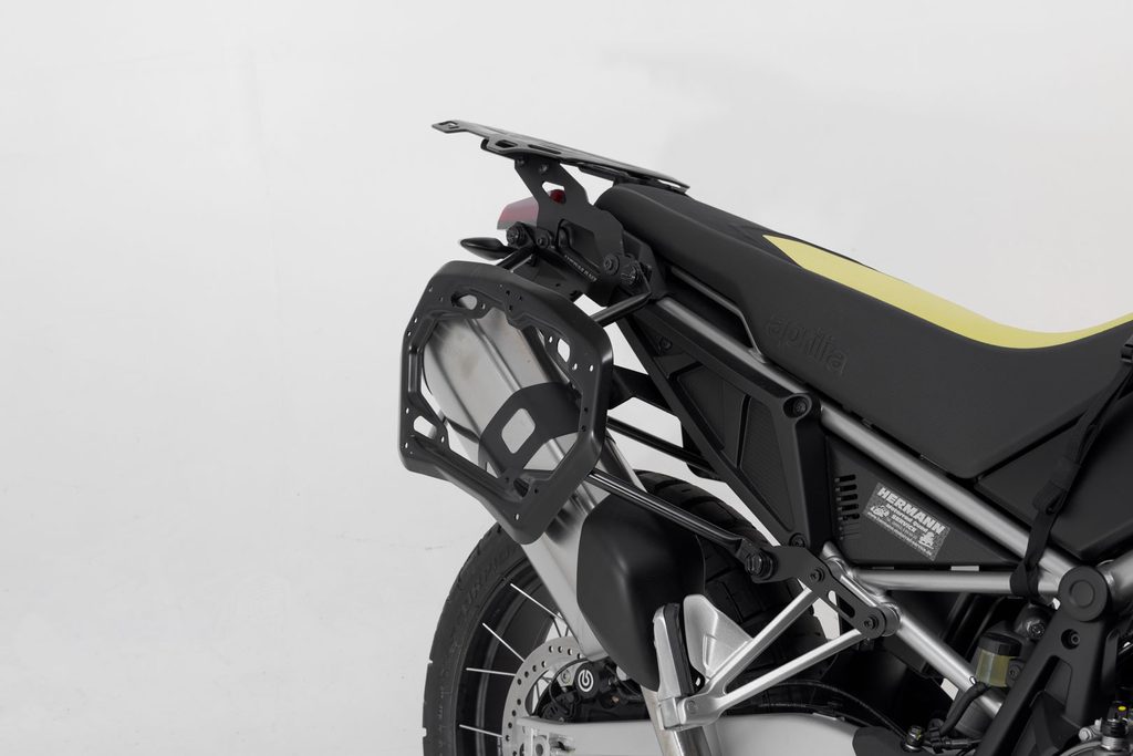 SW-MOTECH vytvořil tuto kombinaci bočních nosičů PRO a dvou tašek SysBag WP L, aby připravil Aprilia Tuareg na další motocyklové dobrodružství. Odolné, odnímatelné nosiče poskytují vodotěsným terénním brašnám optimální oporu v jakémkoli terénu.