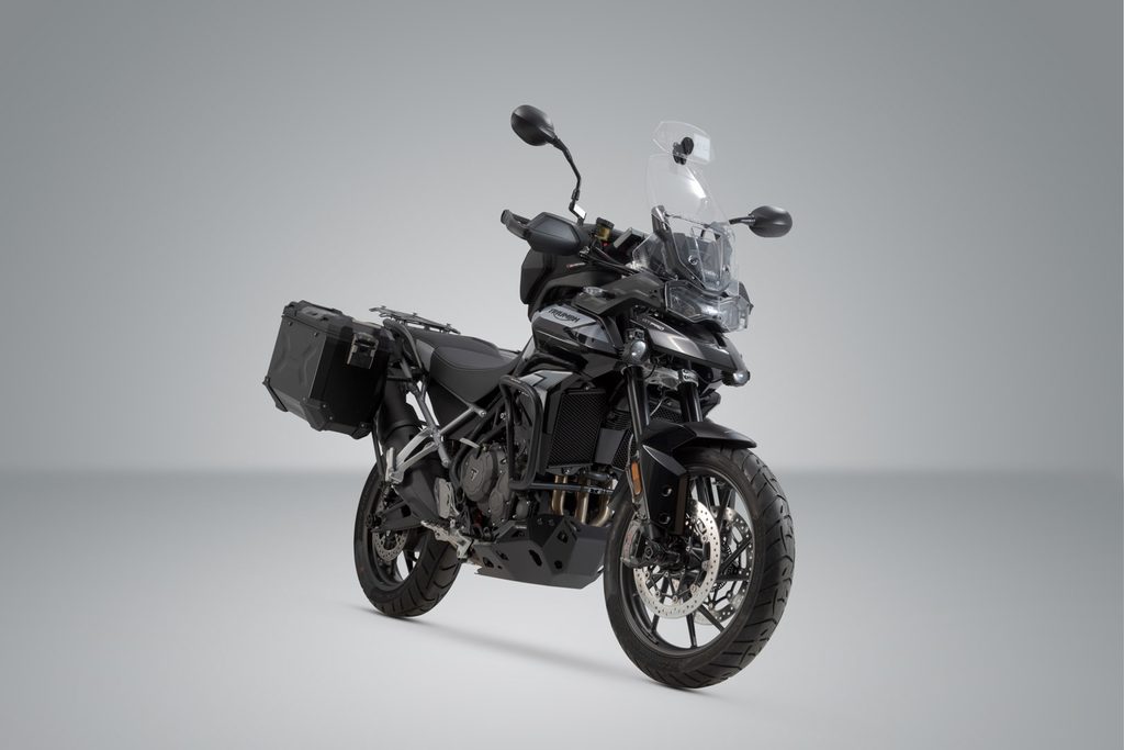 - K dispozici také jako hliníkový kufrový systém TRAX ADV se 2 bočními kufry, bočními nosiči specifickými pro kolo, adaptéry a sadou zámků.