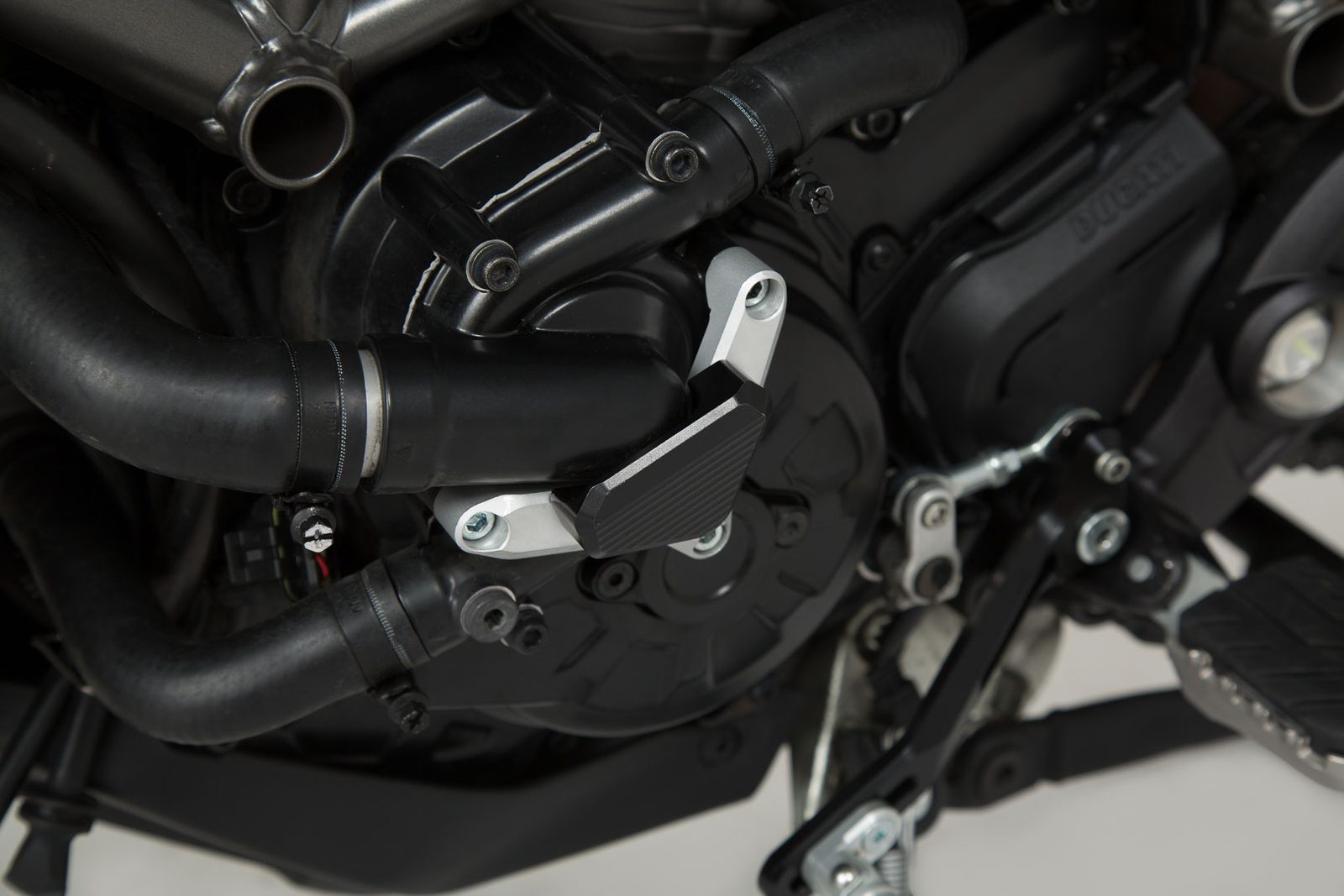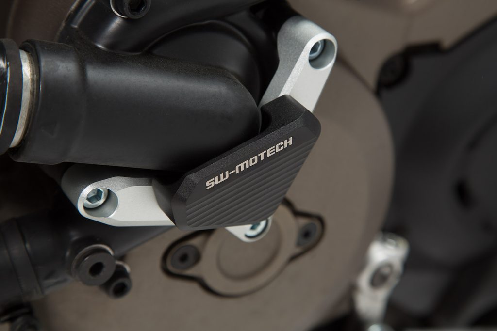 Vodní čerpadlo ochrana pro Ducati Monster 821 a Monster 1200, Hypermotard 939, Hyperstrada 939, Diavel, Multistrada 950 Multistrada 1200Ochrana SW-MOTECHs čerpadlo vody poskytuje dodatečnou ochranu pro vodní čerpadlo Ducati zasažení půdu.