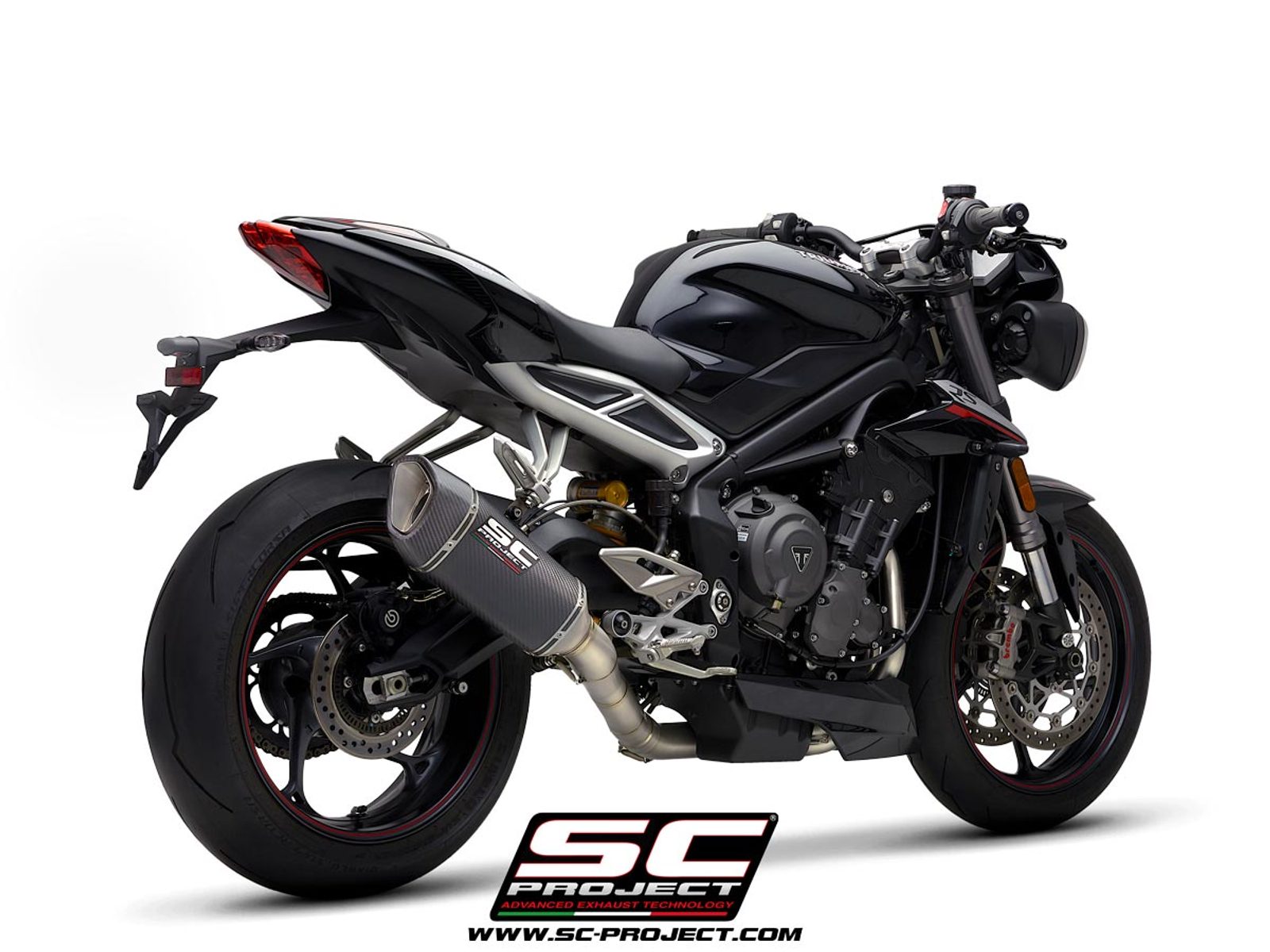 The new complete exhaust system for Triumph Street Triple 765 derives directly from the work of the SC-Project racing department for the Moto2 World Championship.
