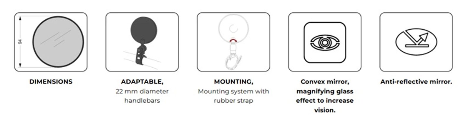 | Adaptable | 22 mm diameter handlebars |
